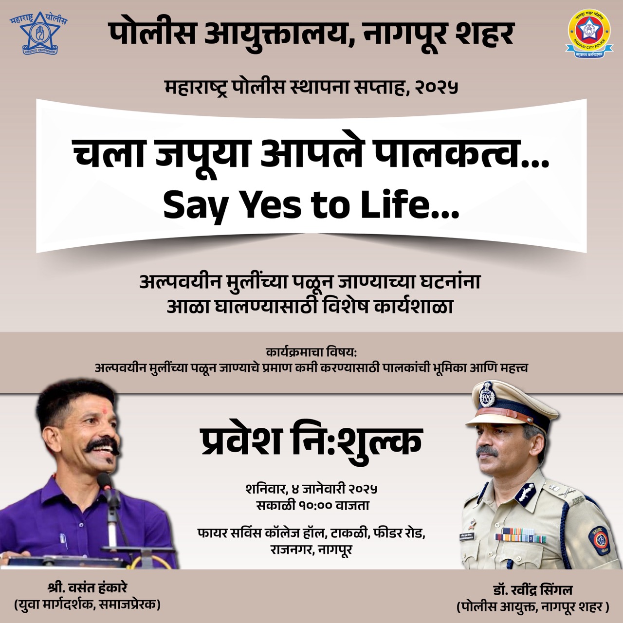 As your Commissioner, I am dedicated to ensuring your safety and security. Our website serves as a resource hub for information on our services, initiatives, and how to get in touch with us. We value your engagement and encourage you to connect with us through our website and social media channels. Your feedback is vital in shaping our efforts to serve you better. Together, we can build a safer and more secure Nagpur. Thank you for your continued cooperation and support.